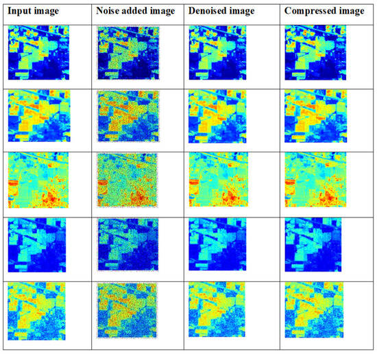 36] into consideration, it can be shown that the proposed study provides better results. The two datasets, namely the Indian Pines dataset and Washington DC Mall dataset, were considered for the study. In the first stage, the input images were passed through an improved adaptive fusion network for noise removal. After denoising, the images were compressed with the CCAO-BiGRU model without reducing the quality of images [