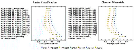 Average evaluations for the raster classification and channel mismatch criteria.