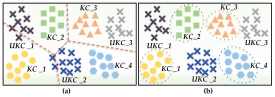 To better address OSR problems, we first formalize its definition. Assuming a training set with K known classes, is the label of . The testing set includes both K known classes and the potential unknown classes U, whose labels belong to . The goal of OSR is to derive a model based on , which can accurately classify known data , and effectively identify unknown data [40].