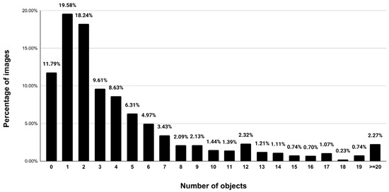Number of objects per image (%).