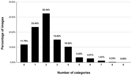 Number of categories per image (%).