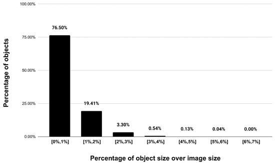 Distribution of the object size (%).