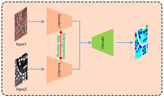 6] equipped with an encoder–decoder architecture, given that FCN-based networks are particularly adept at handling semantic labeling tasks within a fully supervised learning framework. In the encoding phase, we integrate heterogeneous data by fusing features derived from both spectral channel inputs and Digital Surface Model (DSM) [