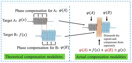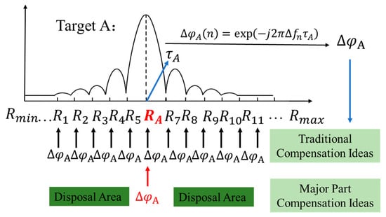 According to the analysis in Section 2.1, the compensation value required for target A is given by Equation (17); represents the phase compensation required for each pulse, represents the carrier frequency agility across different pulses, and is the echo delay corresponding to the target.