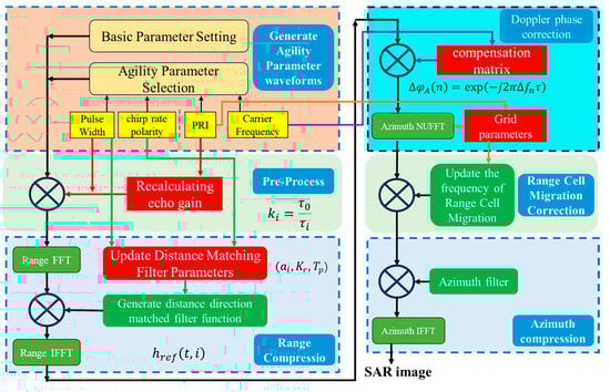 This paper focuses on exploring the impact of parameter agility on SAR imaging models and systematically addressing the effects brought by each parameter to establish a comprehensive multi-parameter agile SAR imaging and processing model. For this purpose, the classical range-Doppler algorithm (RDA) is selected as the basis for imaging processing, and improvements are made to adapt it to the multi-parameter agile SAR model. The specific imaging advantages of various algorithms are not within the scope of this discussion. In fact, the compensation modules proposed for agile parameters in this paper can still be applied to other algorithms (such as the Wavenumber algorithm (ω-k) and Back Projection (BP) algorithm), which will be demonstrated later.
