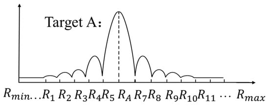The carrier frequency variable is known, and the delay can be determined from the sampling points within the main lobe where target A is located. As shown in Figure 12, for target A after range pulse compression, compensating for all sampling points within the entire signal duration would not only increase computational load but could also potentially interfere with other targets. The core of the algorithm proposed in this paper is to achieve signal reconstruction by compensating only the main lobe units, thereby effectively reducing computational load and minimizing interference between target signals.