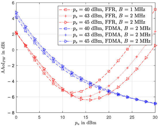 This section analyzes and compares the AAoIPW-related performance in the SAGIN remote sensing system. The system consists of a low earth orbit (LEO) satellite and a UAV as information sources and ground users (GUs) as information receivers. These GUs continuously receive status information from both sources and perform multiscale information fusion. Considering the limited spectrum resources in real SAGIN, the FFR strategy is employed in the system. Under the FFR strategy, GUs adopt successive interference cancellation (SIC) to first decode the information from the UAV and then decode the information from the satellite. Since satellite and UAV nodes are sensitive to the transmission energy consumption and system bandwidth resources in the SAGIN remote sensing system, here, we mainly focus on the impact of transmission power and bandwidth.