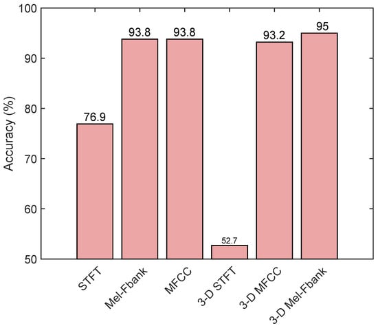 Accuracy comparison using various feature extraction methods with ResNet18 on the Shipsear dataset, as adapted from Wu et al. [64].