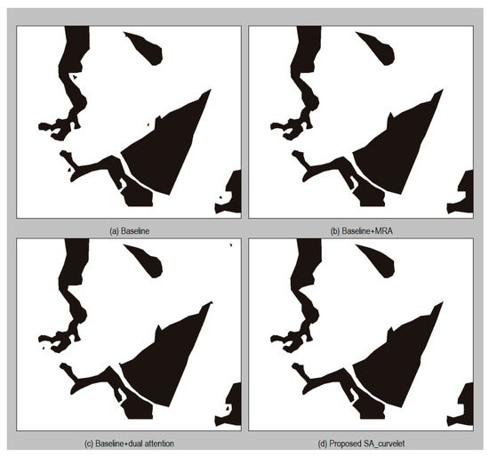 Figure 7 displays the segmentation outcome, illustrating the effectiveness of exclusively utilizing MRA features in the proposed network. The MRA framework is valuable because it aims to accurately represent informal settlement footprints and effectively detect and extract intricate structures and informal settlements of different shapes and sizes. The dual-attention process aids in capturing essential long-range relationships to obtain accurate segmentation outcomes, which is especially valuable in cluttered scenes. The attention mechanism ensures the network does not take into account the specific image acquisition properties, such as spatial resolution, resulting in consistent and uniform semantic understanding.