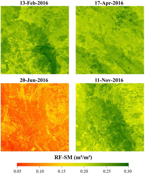 Spatial distributions of the RF-SM in the substudy area during 2016.