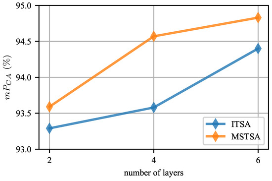 Effect of the number of layers. The depth of a model also affects its representational capacity. The deeper the model, the stronger its representational capacity. As shown in Figure 11, increasing the number of layers in the model from 2 to 6 resulted in an average accuracy improvement of approximately .