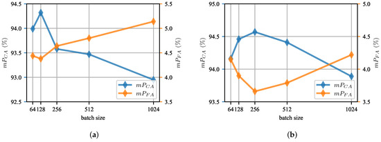 Effect of training batch size. The TSA-cTFER training utilizes a contrastive learning framework, which leverages data within the same batch to generate positive and negative samples. Generally, larger batch sizes provide more negative samples, enabling the model to achieve the specified accuracy quicker in fewer epochs. However, excessively large batch sizes can pose challenges during model training. As illustrated in Figure 12, both too small and too large batch sizes have an impact on network learning, but overall the influence of batch size on performance remains within .