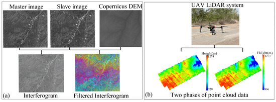 (a) Satellite SAR data of mining area scale; (b) UAV LiDAR data of working face scale.