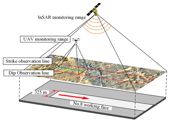 The above analysis suggests that SAR and UAV LiDAR are highly complementary. SAR has the advantage of detecting the CMSF at a large scale in mining areas. However, the UAV LiDAR has the advantage of figuring out the coal mining subsidence parameters at a small scale on specific working faces. The UAV LiDAR has difficulty detecting small subsidence values, while the DInSAR can be used to detect the small deformation value and delimit the boundary of the subsidence field.