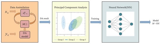 - Zhu, J.; Hu, S.; Arcucci, R.; Xu, C.; Zhu, J.; Guo, Y. Model error correction in data assimilation by integrating neural networks. Big Data Min. Anal. 2019, 2, 83–91. [Google Scholar] [CrossRef]