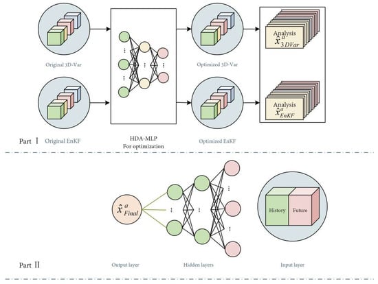 - Huang, L.; Leng, H.; Li, X.; Ren, K.; Song, J.; Wang, D. A Data-Driven Method for Hybrid Data Assimilation with Multilayer Perceptron. Big Data Res. 2021, 23, 100179. [Google Scholar] [CrossRef]