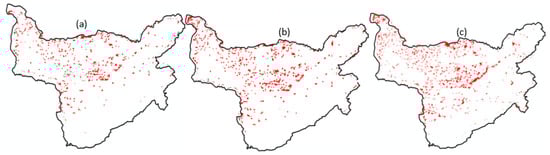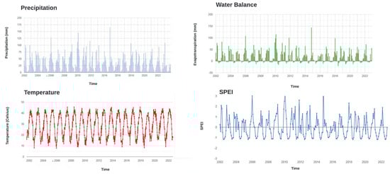 The CHIRPS (Climate Hazards Group InfraRed Precipitation with Station data) is a precipitation dataset developed by the Climate Hazards Group at the University of California, Santa Barbara. It offers high-resolution rainfall estimates globally by integrating satellite imagery with in situ station data. This integration enables the creation of gridded rainfall time series, which are utilized for trend analysis and seasonal drought monitoring purposes [63]. CHIRPS is especially valued for its ability to combine high temporal resolution with a fine spatial resolution of approximately 0.05 degrees, which is roughly 5 km. It offers both daily and monthly aggregated precipitation estimates, making it a crucial tool for environmental scientists, agronomists, and meteorologists [64]. This dataset is particularly useful in regions where ground-based monitoring systems are sparse but where rainfall monitoring and accurate historical precipitation data are critical for agricultural planning, drought assessment, and water resource management [65]. CHIRPS data used in this study are available at https://www.chc.ucsb.edu/data/chirps (accessed on 14 May 2024).