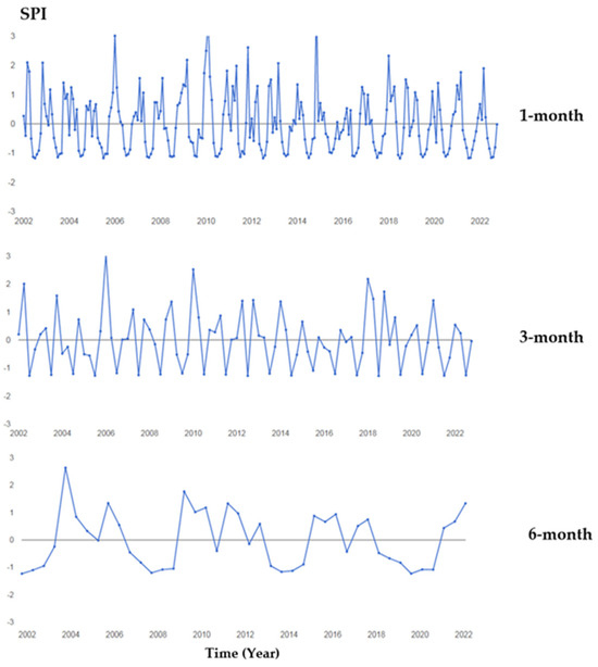We selected the Standardized Precipitation Index (SPI) as the benchmark for evaluating our proposed index. SPI values were computed for one-, three-, and six-month accumulation periods.