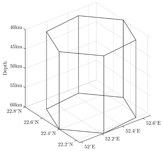 Based on the unit analysis process involved in the finite element method (FEM) [64,65,66], this paper proposes a method for constructing the shape function of an arbitrary isoparametric element, with formulas for the shape function of a DGGS cell and thus its successfully obtained volume integral. Considering the fact that Poisson’s formula [44,45] can exponentially amplify the error of the gravity gradient tensor forward results in magnetic vector forwarding, the use of the triangular superconvergence point aims to significantly improve the computational accuracy without increasing the computational complexity. To this end, the DGGS cell is laterally divided into six positive triangular sub-cells, and the symmetry rule is introduced to determine the exact locations of the integration points and their corresponding integration weight coefficients. In this paper, the computation accuracy of the DGGS-based magnetic vector forwarding algorithm is analyzed in depth using a tiny tesseroid-based forwarding algorithm and comprehensively compared with other techniques. This algorithm is an extended algorithm for adaptive tesseroid forwarding, which uses a very small tesseroid cell and fits a complex source; with a large ratio of the distance between the observation points and the size of the tesseroid cell, the accuracy of the calculations is ensured [23,67].