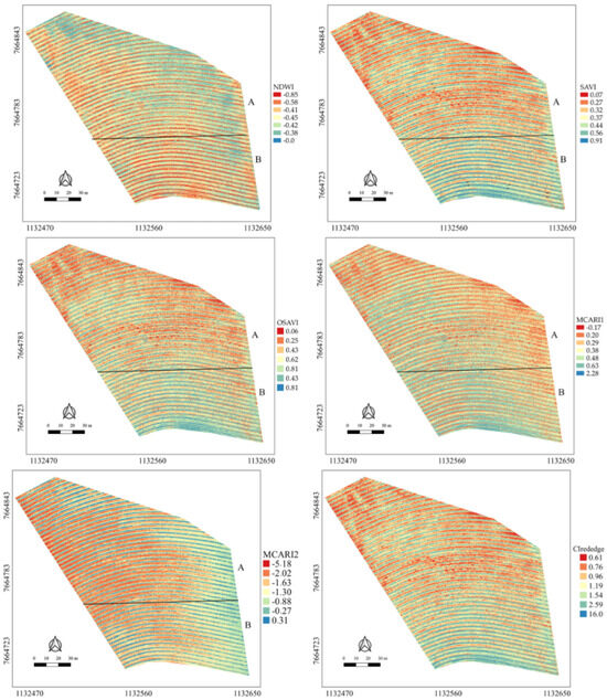 The vegetation indices were presented in Table 1. After processing the orthomosaics, the images were cropped only in the area of interest for the application of vegetation indices.
