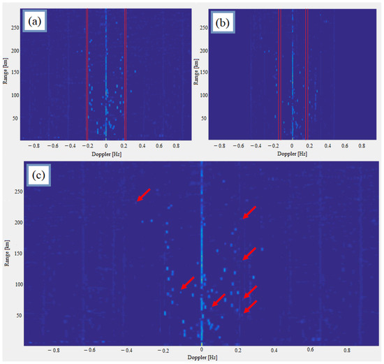 - Bi-frequency HFSWR with integration of the RD maps from two frequencies into a single RD map on which target detection is performed. The idea of combining RD maps from two synchronous waveforms at different frequencies in HF skywave radars designed in the 1970s served as a basis for our solution. In the existing bi-frequency radars, the signal is separately processed for each subsystem that operates at one frequency. In this way, one RD-HR map is formed for each subsystem. Next, target detection from RD-HR maps is carried out separately in order to perform the fusion of the obtained results and to find a unique set of detections. However, the detection process is performed twice, so the next goal is to form a unique RD-HR map so that the detection of targets is performed only once. In this regard, the proposed method for RD map focusing and the improvement of the detection of ships moving in the Bragg-line zone represent a contribution.