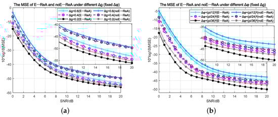 Then, we fix the variance of at , while varying the variances of to , , and , respectively. The experimental results are depicted in Figure 4a. It is evident that the performance of both E-ReA and noE-ReA declines as the variance of increases. Overall, across varying variances of , E-ReA exhibits a performance improvement of 4 dB compared to noE-ReA.
