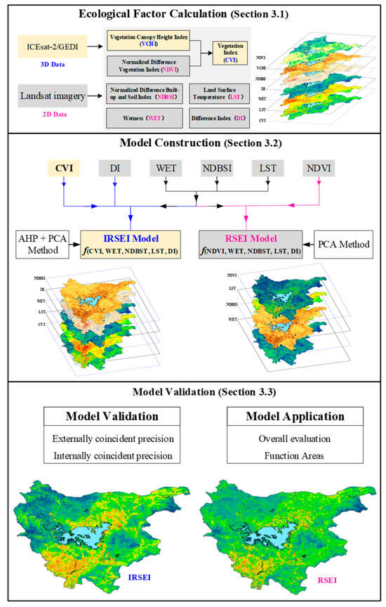 - Liu, Y.; Xu, W.H.; Hong, Z.H.; Wang, L.G.; Ou, G.L.; Lu, N.; Dai, Q.L. Integrating three-dimensional greenness into RSEI improved the scientificity of ecological environment quality assessment for forest. Ecol. Indic. 2023, 156, 111092. [Google Scholar] [CrossRef]