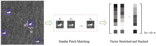In reality, some image patches are located in different positions with similar structures. This is a typical property of SAR images and is called nonlocal similarity. Nonlocal-similarity-based methods have been investigated in SAR image denoising, restoration, and detection. These studies have demonstrated that grouped nonlocal similarity image patches can be considered as low-rank matrices. As stated previously, the successful application of LRSD depends on the low-rank structure of the SAR image. In this section, the low-rank structure of a matrix of nonlocally similar patches is exploited with similar structures, and this is incorporated into LRSD as a core concept.