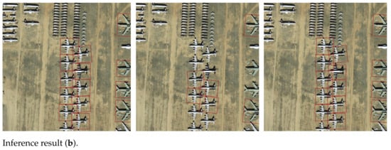 Figure 8 shows the inference results on DOTA-v1.5. From Figure 8a, it can be seen that in scenes where large, medium, and small targets are all present, the improved detector achieves better accuracy in rotated bounding boxes. From Figure 8b, it is evident that the improved detector achieves higher detection accuracy and recall in scenes with repetitive and overlapping distributions of a single category.