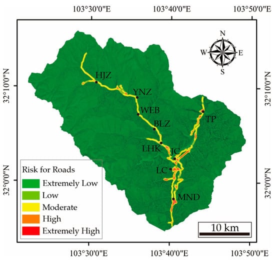 Risk estimation of roads in the Diexi Catchment.