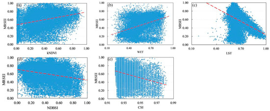 Changes in the MRSEI with the kNDVI, WET, LST, NDBSI, and CSI.