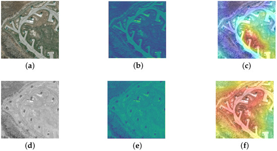 Feature visualization of the backbone for YOLOv5s and ACDF-YOLO. (a) Input RGB image, (b) feature of RGB image, (c) heatmap of YOLOv5s, (d) input IR image, (e) feature of IR image, (f) heatmap of ACDF-YOLO.