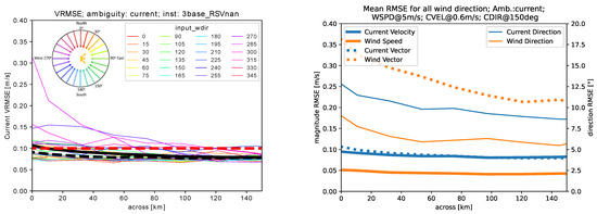 Figure 6-right. Blue lines relate to TSCV, and orange lines to OSVW. Thick solid lines are RMSE for TSCV and OSVW velocities, thick dashed lines for TSCV and OSVW vectors (left vertical axis), and thin solid lines for TSCV and OSVW directions (right vertical axis). The thick dashed blue line is the same as the thick black line in