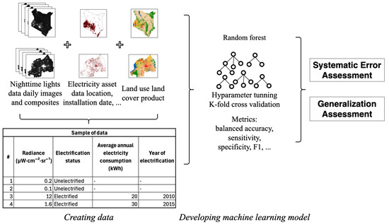 Overview of the steps used to assess the errors in nighttime lights-based electrification mapping models.