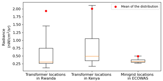 Mapping electrification with NTL fundamentally involves the classification of NTL pixels as electrified or unelectrified on the basis of their radiance. However, the use of NTL for mapping electrification is complicated by the fact that the data source is affected by clouds, atmospheric effects (e.g., effects of aerosols, water vapor, and ozone), and is sensitive to other sources of light that are not due to electric lighting such as biomass burning, stray-lights, gas flares, among others [39]. Some approaches have been developed in the literature to address these challenges including (1) setting a radiance threshold above which an NTL pixel is considered electrified [33,35,36], (2) developing supervised learning models to classify NTL pixels containing the locations of power systems assets such as transformers as electrified while those without these assets are classified as unelectrified [40], and (3) estimating the statistical confidence that a settlement is electrified by computing the number of nights that the settlement is brighter than the background [41].