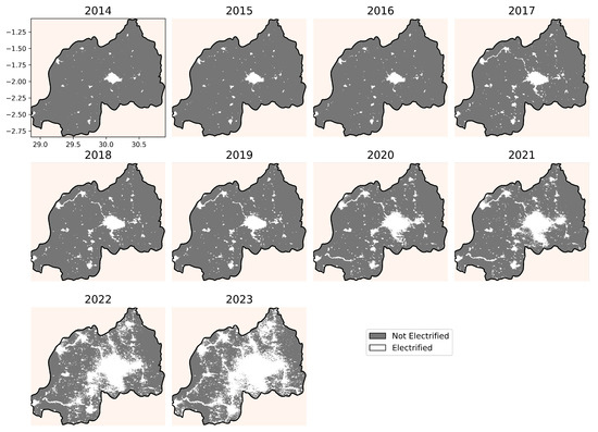 - Ru, Y.; Li, X.; Belay, W.A. Tracking Spatiotemporal Patterns of Rwanda’s Electrification Using Multi-Temporal VIIRS Nighttime Light Imagery. Remote Sens. 2022, 14, 4397. [Google Scholar] [CrossRef]