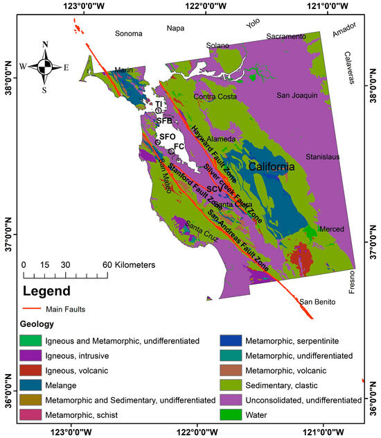 - Horton, J.D.; San Juan, C.A.; Stoeser, D.B. The State Geologic Map Compilation (SGMC) Geodatabase of the Vonterminous United States (Version 1.1, August 2017); U.S. Geological Survey Data Series; U.S. Geological Survey: Washington, DC, USA, 2017; Volume 1052, 46p. [CrossRef]