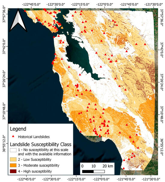 | 4 | Absolute velocity interval:(>15) mm/year AND Slope interval: (5, 90]° OR Historical landslide event AND Slope interval: (5, 90]° | High susceptibility |