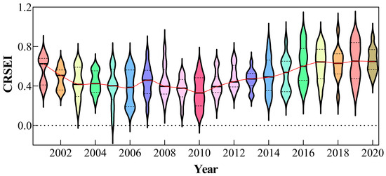 Distribution of CRSEI data from 2001 to 2020 in Henan Province.