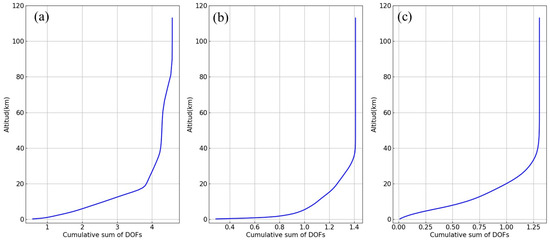 In this equation, is the matrix of averaging kernel (). quantifies the degrees of freedom for signal (DOFs), with its trace indicating the vertically independent information derived from the measurements. denotes the error terms.