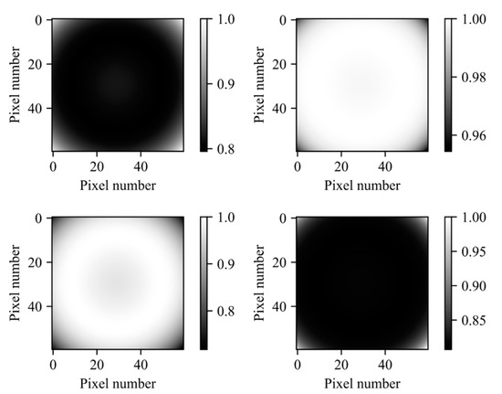 Ultimately, as shown in Equation (1), four wind field interferograms (I0, I1, I2, I3) with a phase step of π/2 can be obtained on the CCD. According to Equation (1), the polarization direction of the linear polarizer array LP, as depicted in Figure 1, determines the phase stepping of the four interferograms. Thus, precise control of the polarization direction of LP allows for the implementation of the standard “Four-step” phase shifting in the interferograms. This represents a notable advantage of the polarization interferometer.