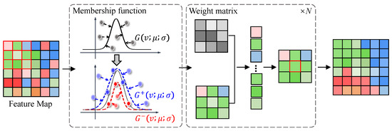 Previous studies have demonstrated that fuzzy learning can smooth boundary features and make the network easier to discriminate [61]. Current studies are generally based on type-1 fuzzy, such as the improved Gaussian fuzzy module, which uniquely determines the degree of affiliation based on the position of neighboring pixels: