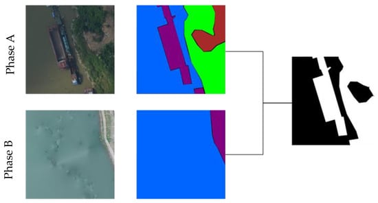 where denotes the image information of the change area at time and denotes the image information at time . This process involves finely annotating various land object categories within the change area to obtain their labels. A similar process is applied to multiple change areas to construct a comparative dataset D.