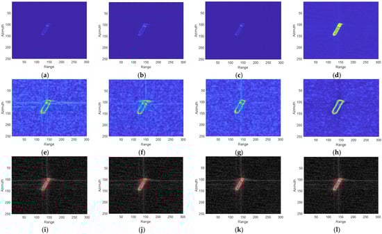 The figure presents the HH image of the ship chips and the results derived from various optimization methods. It is evident that when the target region is individually optimized, the amplitude obtained for the target region is relatively low, resulting in a less distinct contrast between the target and the background, as illustrated in Figure 3 and Figure 4c,d. Conversely, with the joint optimization method, while the contrast between the target and background becomes more pronounced, the difference in the target region significantly exceeds that of the original HH channel image, as seen in Figure 3 and Figure 4e,f. However, when employing the amplitude approximation method, there is a more pronounced difference between the target and background regions, and the target region exhibits greater uniformity, as depicted in Figure 3 and Figure 4g,h.