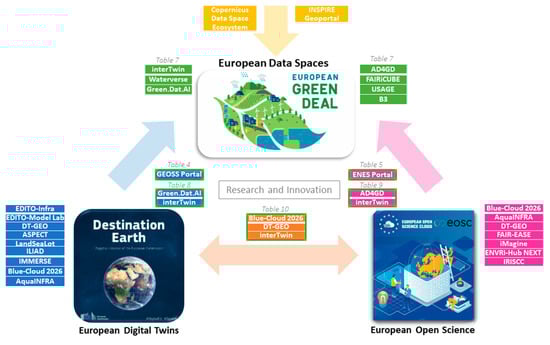 2.3. Research and Innovation (R&I) Relationship between EOSC, Data Spaces, and DTs
