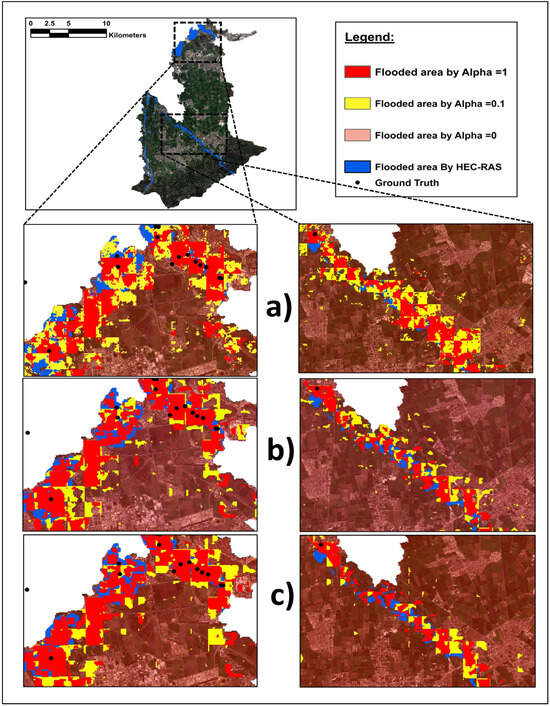 Recent advancements in remote-sensing technology have ushered in a new era of flood-mapping capabilities. By harnessing a diverse array of sensors mounted on satellites and aircraft, including synthetic aperture radar (SAR) and multispectral imaging, researchers can achieve both high-resolution detail and wide-area coverage, which are crucial for precise flood delineation. These sophisticated tools not only enable real-time monitoring but also facilitate timely disaster response and management efforts. Moreover, through seamless integration with geographic information systems (GIS), remote-sensing data empower comprehensive flood-risk assessment and the formulation of effective mitigation strategies. The effectiveness of this remote-sensing approach has been evidenced in numerous studies worldwide [7,8,9,10], affirming its pivotal role in flood mapping and management initiatives. Ongoing research endeavors focusing on algorithm refinement and sensor innovation promise to further elevate the accuracy and efficiency of these techniques. However, it is important to acknowledge that the method of FSM by remote sensing has limitations, such as the unavailability of SAR radar satellite images on days of flooding or the limitations of optical images due to the presence of clouds. These constraints highlight the need for continued advancements in remote-sensing technology to overcome such challenges and improve the reliability of flood-detection systems.