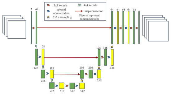 In addition, Schonfeld et al. [24] introduced a GAN architecture based on a U-Net [25,26,27] discriminator. U-Net GAN can supply comprehensive feedback, encompassing both global and local aspects to the generator through an encoding–decoding process, and the discriminator used in this method can assist the generator in producing more realistic images both globally and locally.