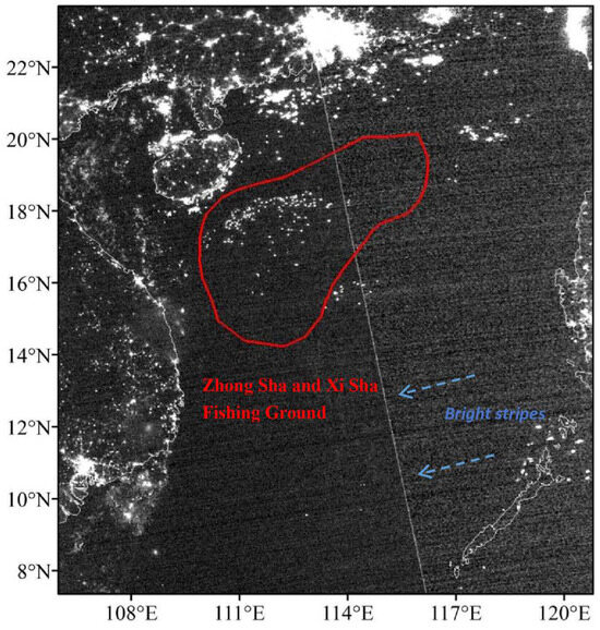 The following supporting information can be downloaded at https://www.mdpi.com/article/10.3390/rs16193678/s1, Figure S1: April composite data from DMSP-OLS images for the Zhong Sha and Xi Sha fishing ground from 2005 to 2012.