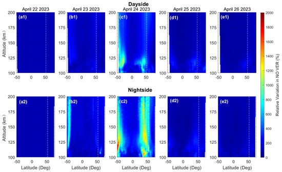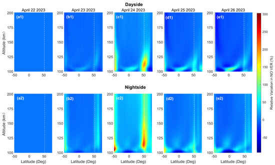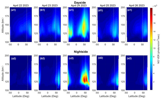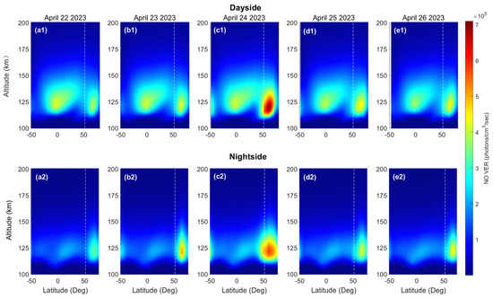 3.1. Global Distribution of NO Emission Response during the Geomagnetic Storm