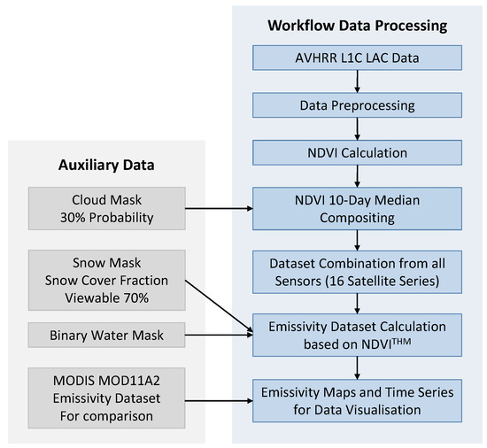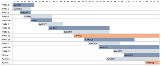 - EUMETSAT. AVHRR Level 1b Product Guide; Technical Report; EUMETSAT: Darmstadt, Germany, 2011. [Google Scholar]